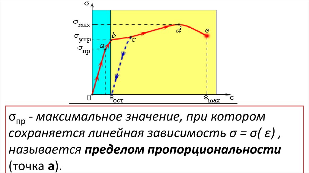 σпр - максимальное значение, при которомсохраняется линейная зависимость σ = σ( ε) ,