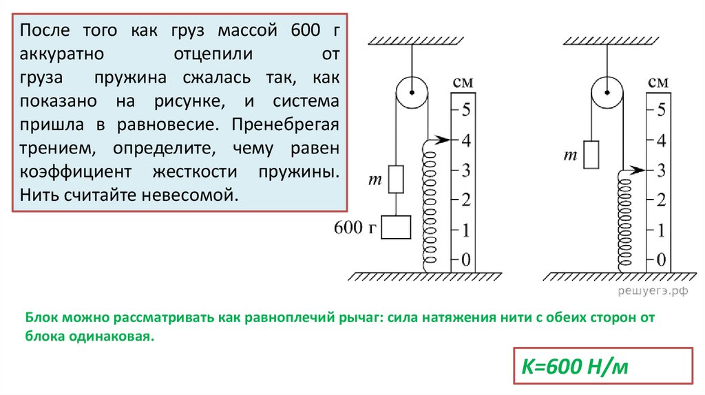 двух грузов по 0,1 кг. Ответ выразите в сантиметрах.