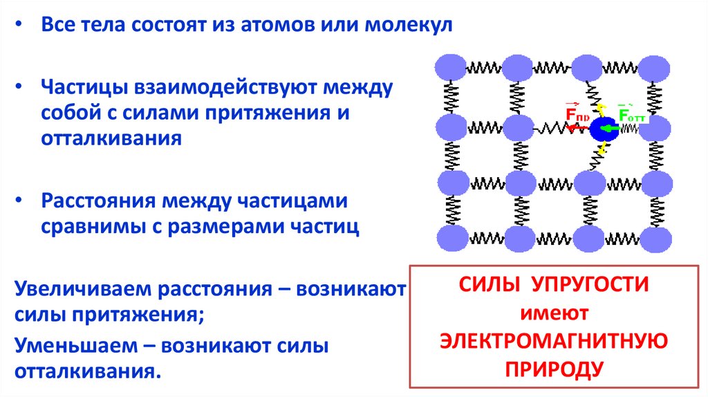 • Все тела состоят из атомов или молекул• Частицы взаимодействуют между
