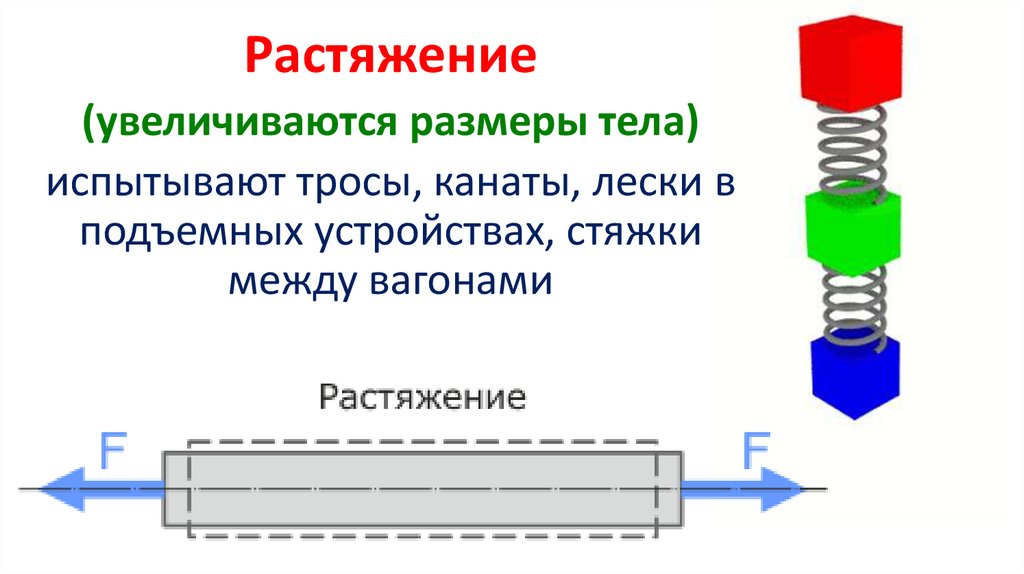 Растяжение(увеличиваются размеры тела)