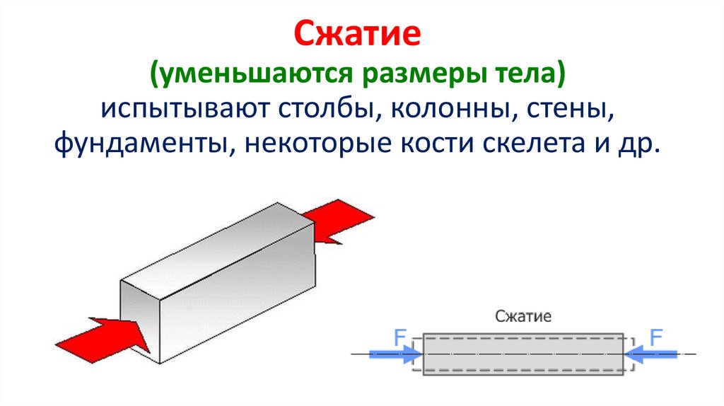 Сжатие(уменьшаются размеры тела)