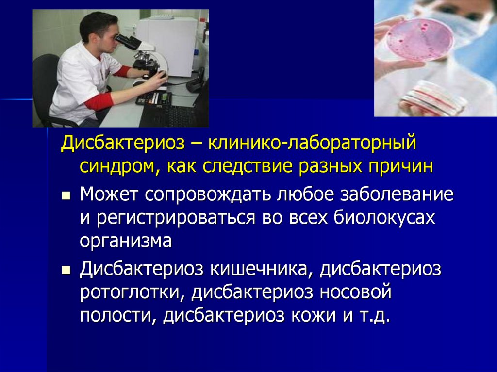 Дисбактериоз – клинико-лабораторныйсиндром, как следствие разных причин
