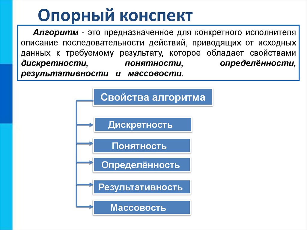 Опорный конспектАлгоритм - это предназначенное для конкретного исполнителя