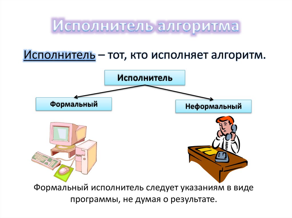 Исполнитель – тот, кто исполняет алгоритм.Исполнитель