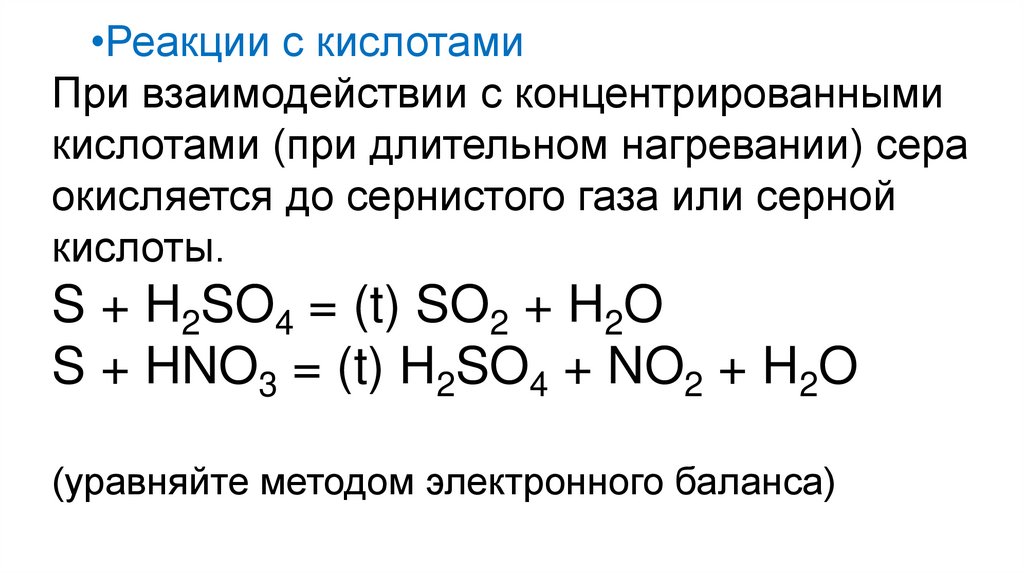 кислотами (при длительном нагревании) сера