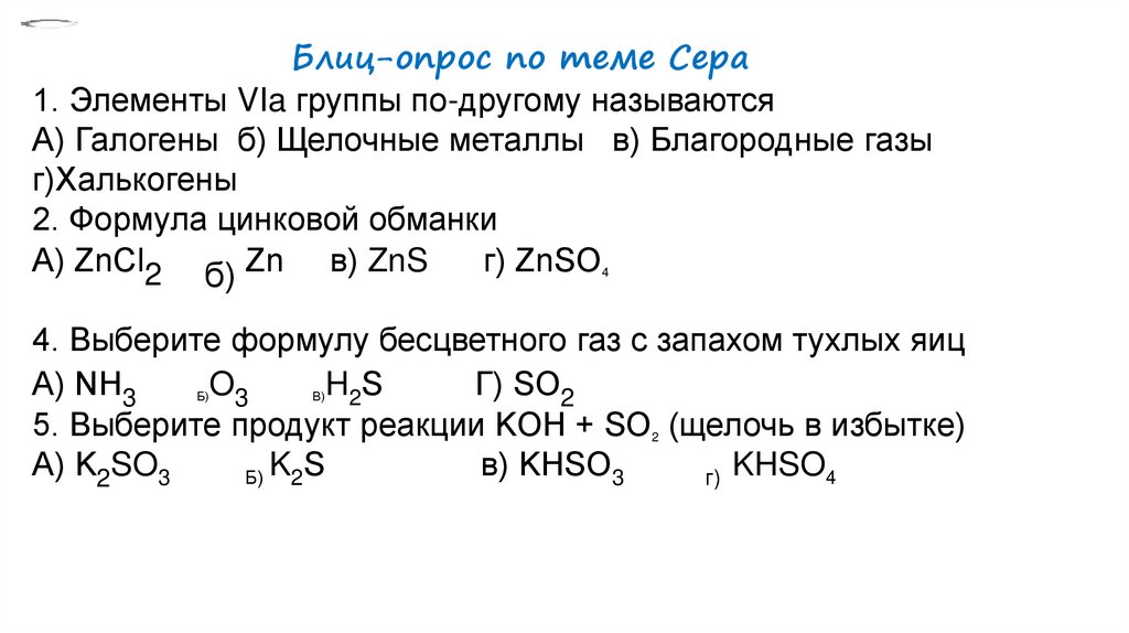 Блиц-опрос по теме Сера1. Элементы VIa группы по-другому называются