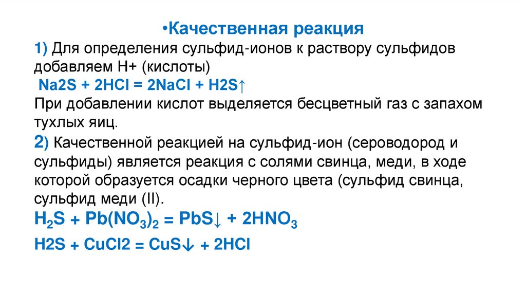 в растворе (карбонаты, сульфиды и др.). Также серная