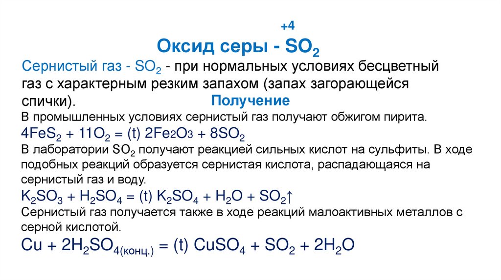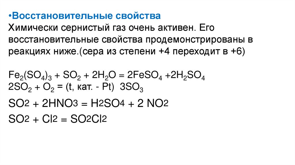 восстанавливается до SO2.