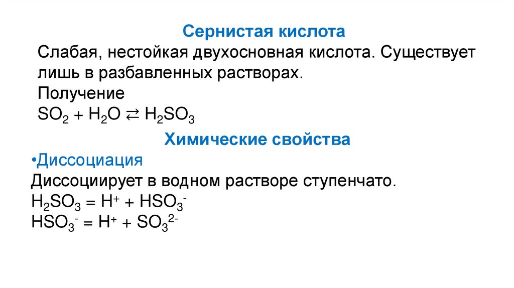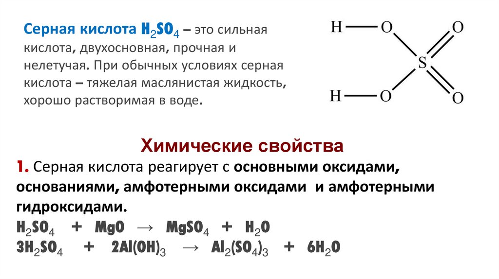 Серная кислота H2SO4 – это сильнаякислота, двухосновная, прочная и