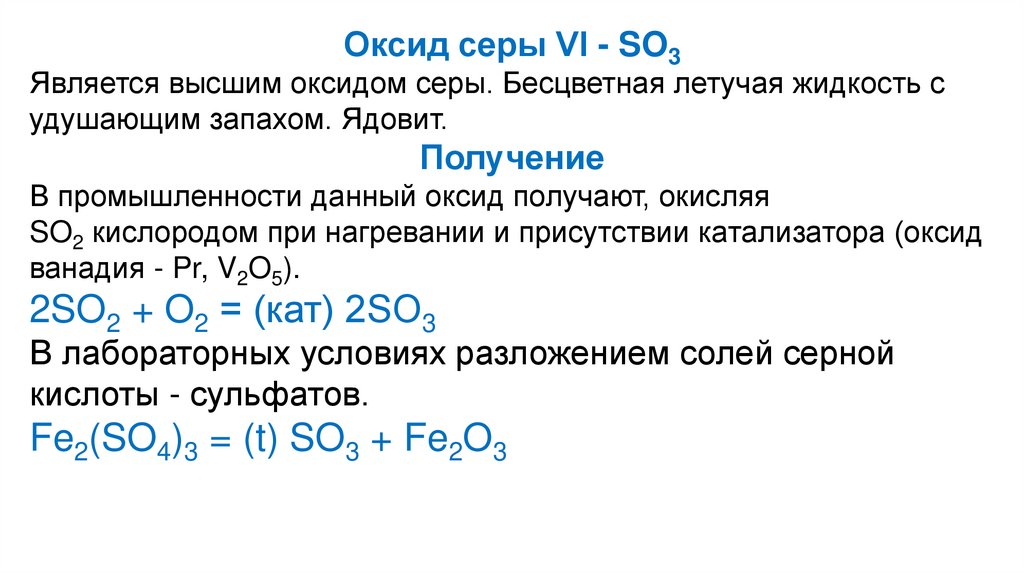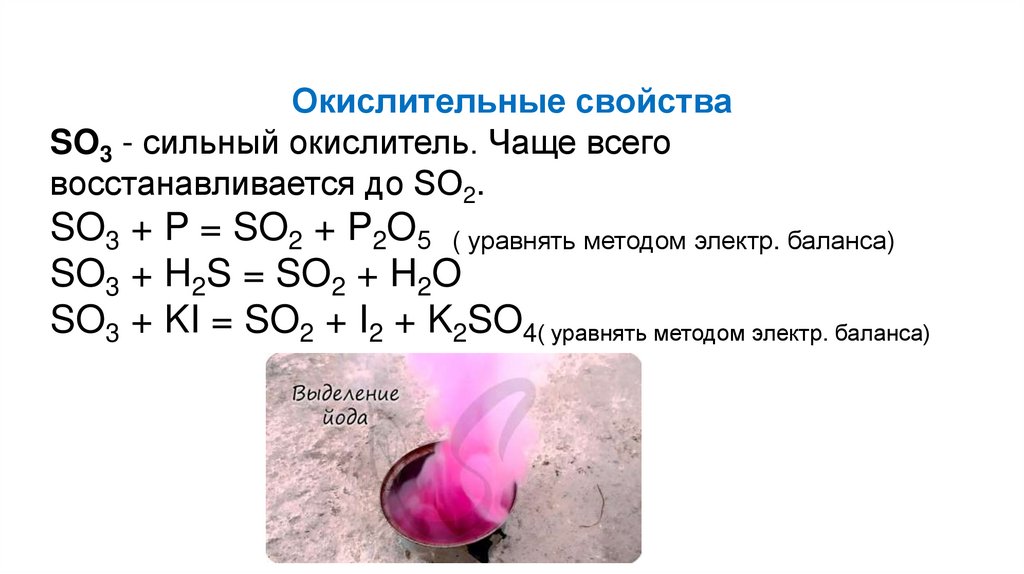 Окислительные свойстваSO3 - сильный окислитель. Чаще всего