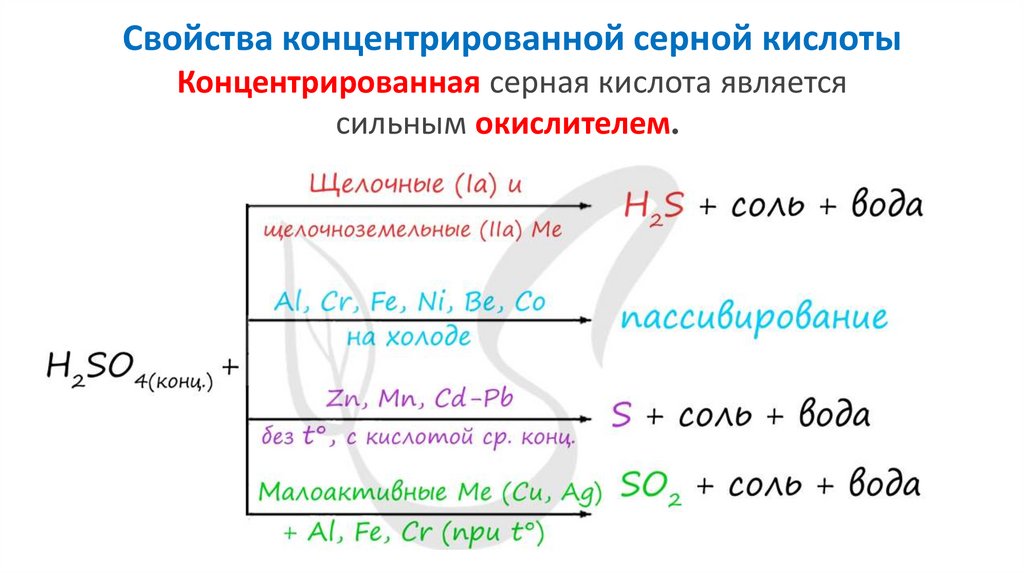 Свойства концентрированной серной кислотыКонцентрированная серная кислота является