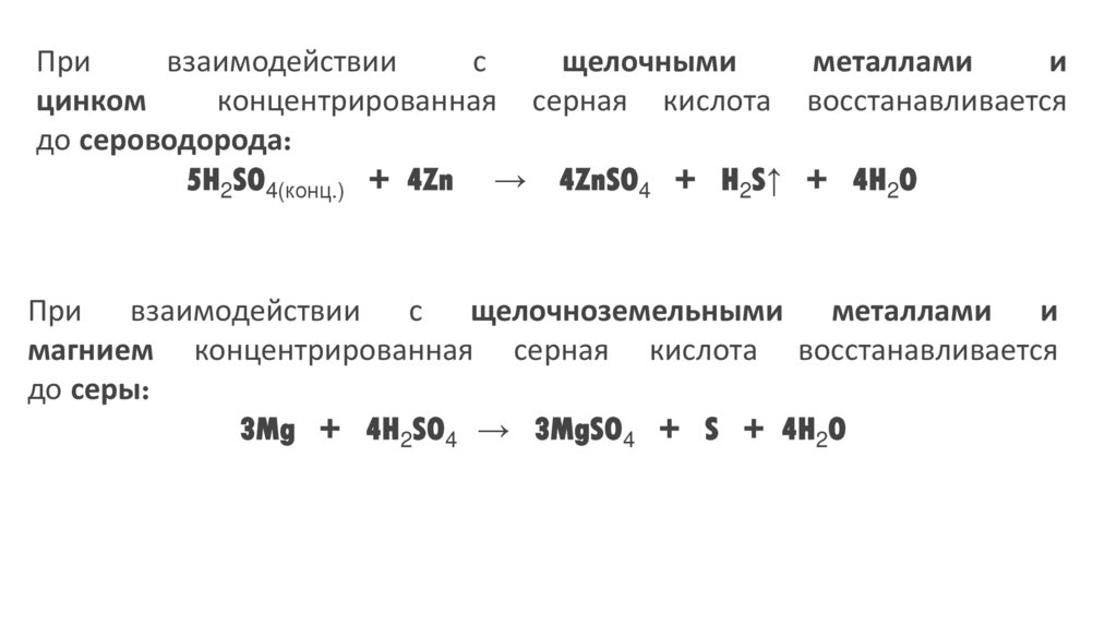 магнием концентрированная серная кислота восстанавливается