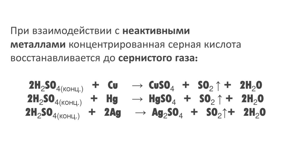 При взаимодействии с неактивнымиметаллами концентрированная серная кислота