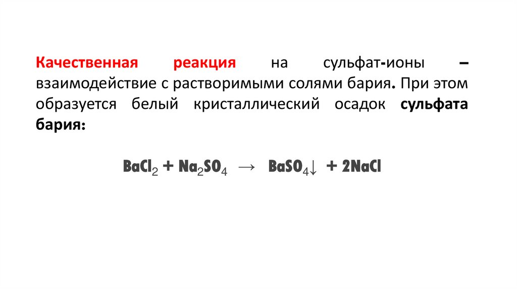 взаимодействие с растворимыми солями бария. При этом