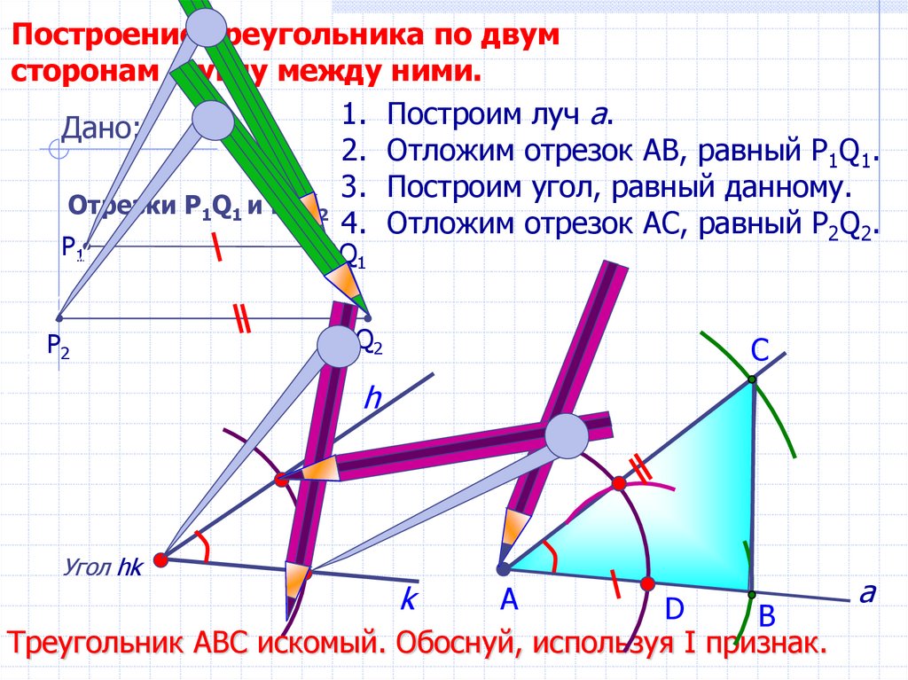 Построение треугольника по стороне идвум прилежащим к ней углам.