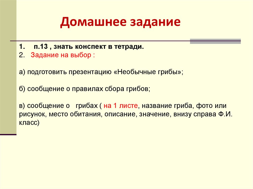 Домашнее задание1. п.13 , знать конспект в тетради.