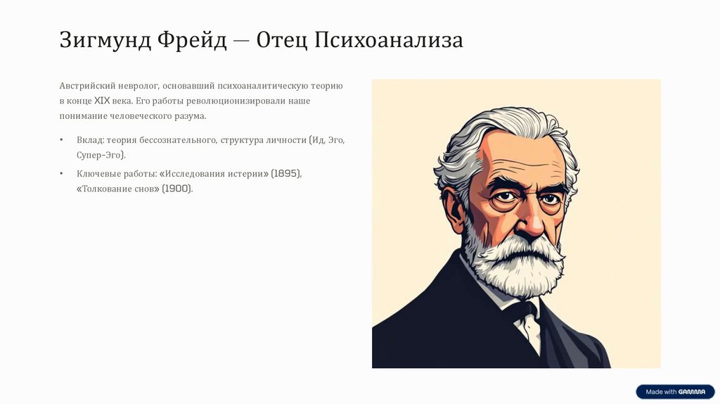 Зигмунд Фрейд — Отец ПсихоанализаАвстрийский невролог, основавший психоаналитическую теорию