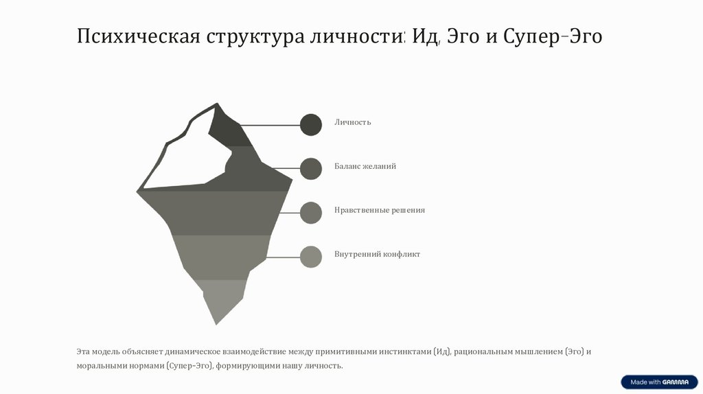 Эта модель объясняет динамическое взаимодействие между примитивными инстинктами (Ид), рациональным мышлением (Эго) и