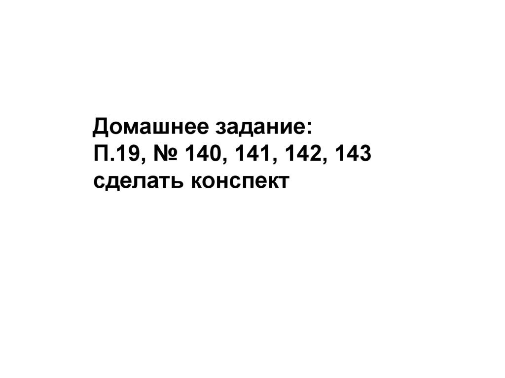 Домашнее задание:П.19, № 140, 141, 142, 143