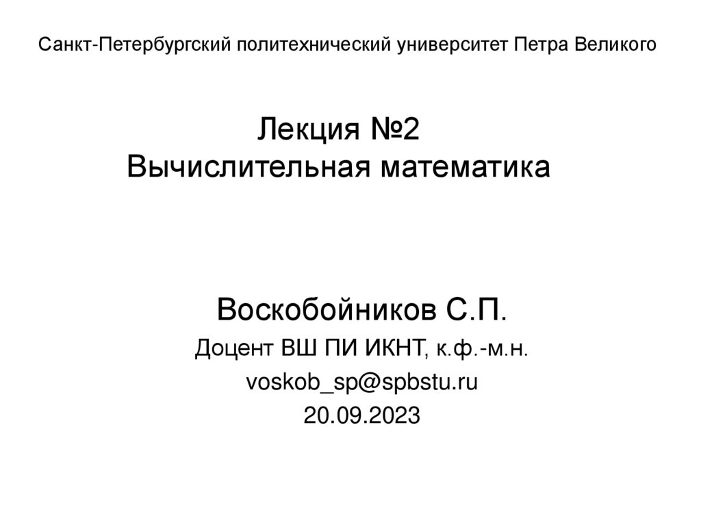 Санкт-Петербургский политехнический университет Петра ВеликогоЛекция №2