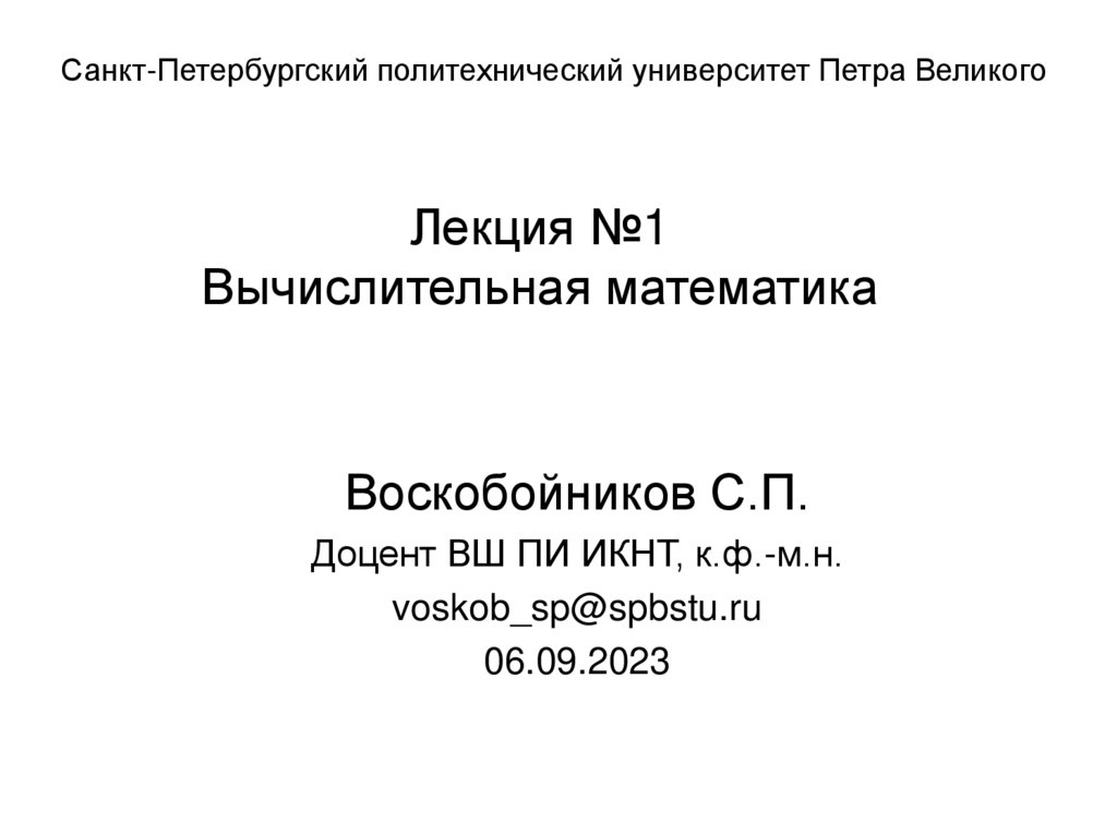 Санкт-Петербургский политехнический университет Петра ВеликогоЛекция №1