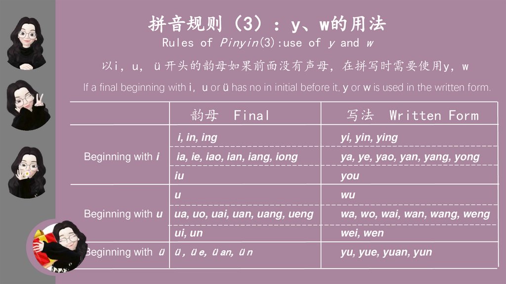 拼音规则 3 y、w的用法Rules of Pinyin(3):use of y and w