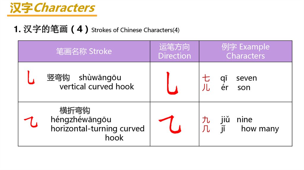 汉字Characters1. 汉字的笔画 4 Strokes of Chinese Characters(4)