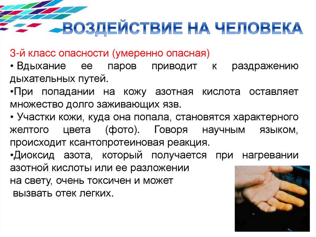 3-й класс опасности (умеренно опасная)• Вдыхание ее паров приводит к раздражению