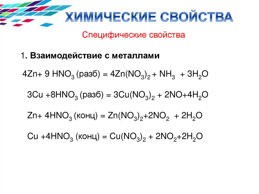 4Zn+ 9 HNO3 (разб) = 4Zn(NO3)2 + NH3 + 3H2O