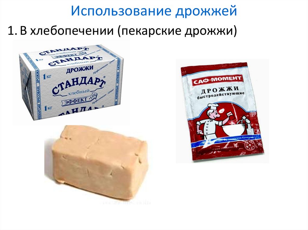 Использование дрожжей1. В хлебопечении (пекарские дрожжи)
