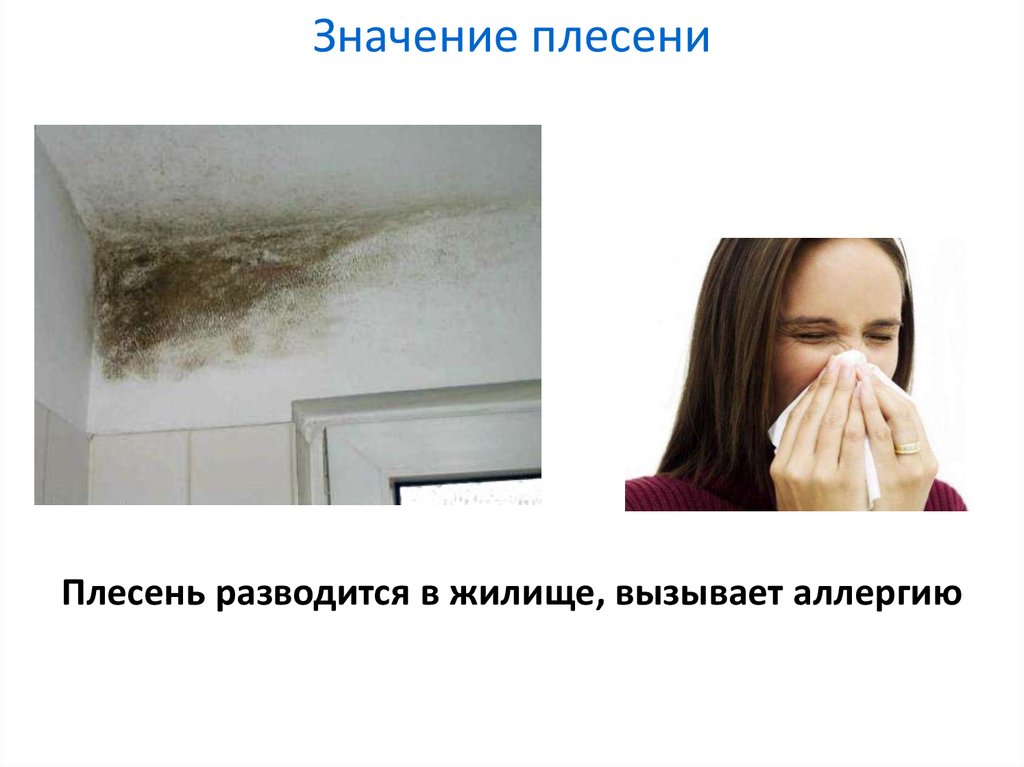 Значение плесениПлесень разводится в жилище, вызывает аллергию