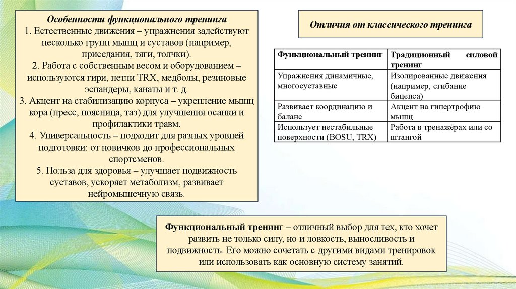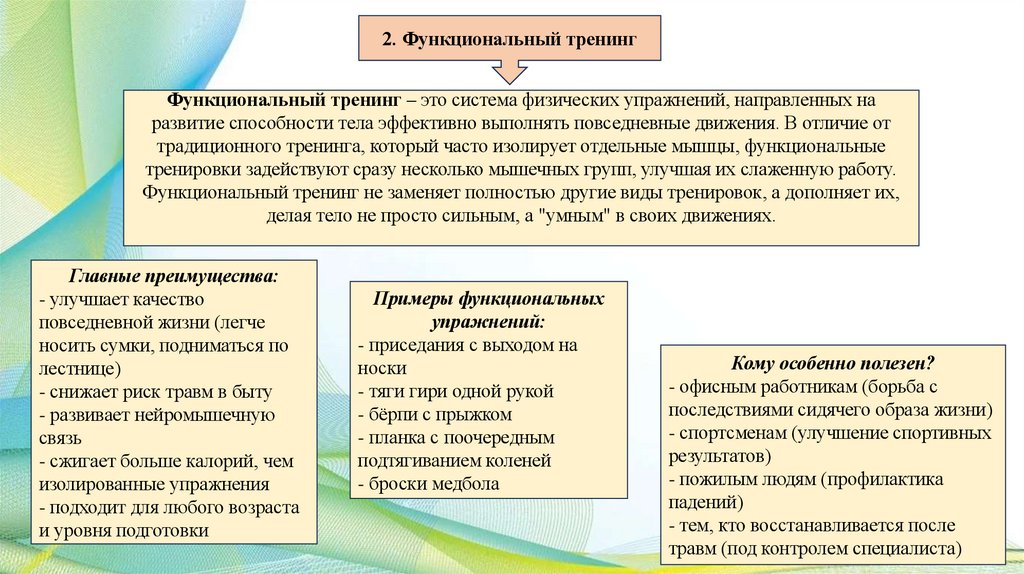 тренировки направлены на улучшение повседневной физической активности и развитие