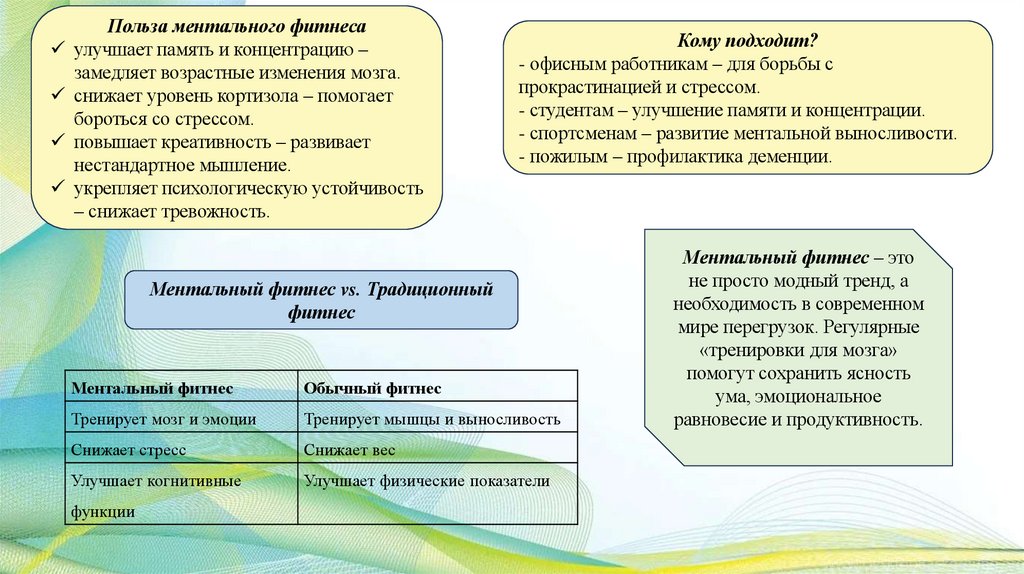 поддерживать форму, но и комплексно улучшать качество жизни.