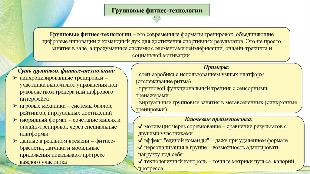 Фитнес-технологии — это комплекс научно обоснованных методов, инструментов и