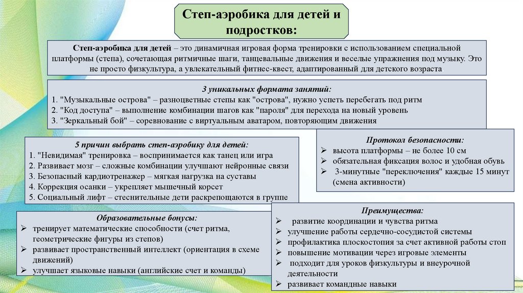 Степ-аэробика для детей – это динамичная игровая форма тренировки с использованием специальной