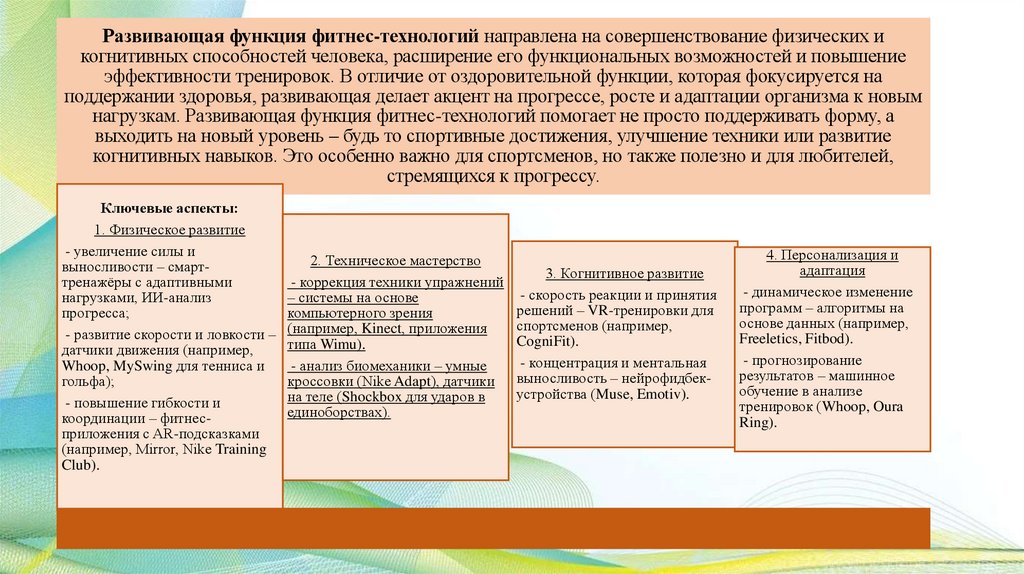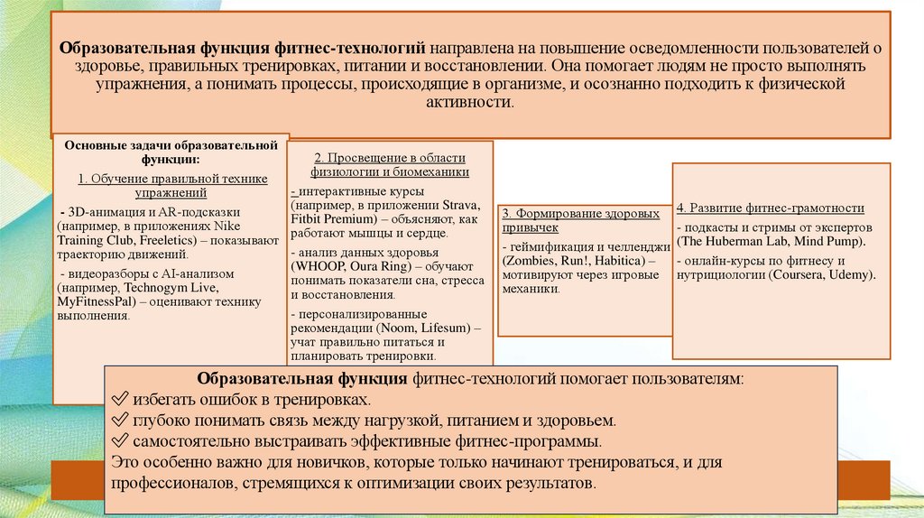 достижения поставленных целей. Фитнес-технологии охватывают широкий спектр решений