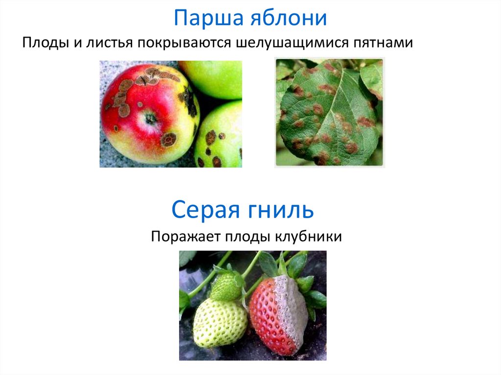 Парша яблониПлоды и листья покрываются шелушащимися пятнами