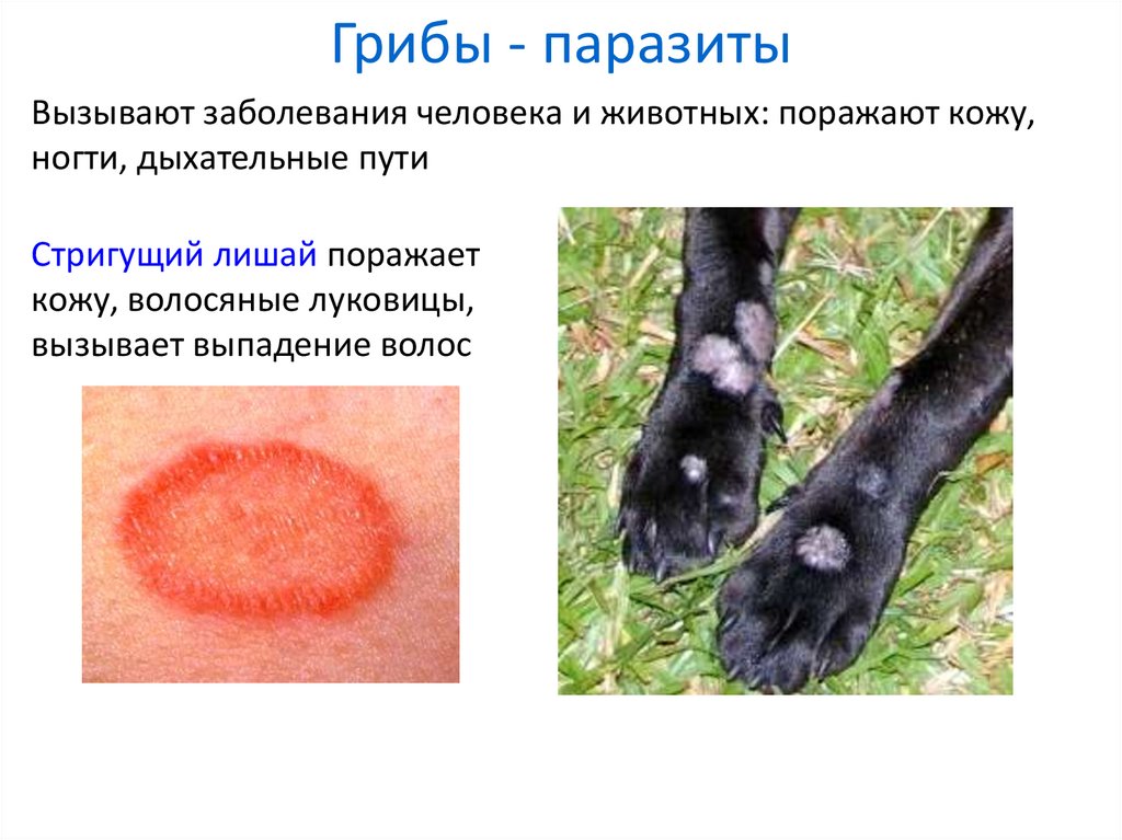 Грибы - паразитыВызывают заболевания человека и животных: поражают кожу,