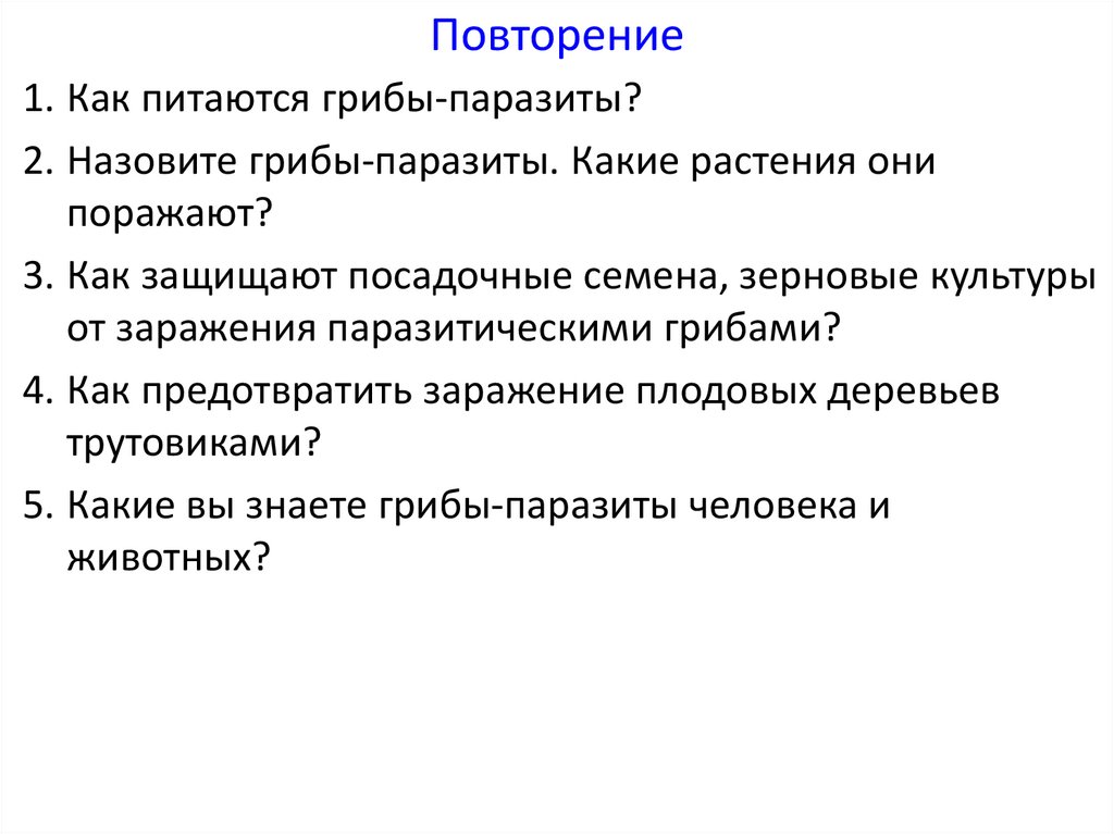 Повторение1. Как питаются грибы-паразиты?