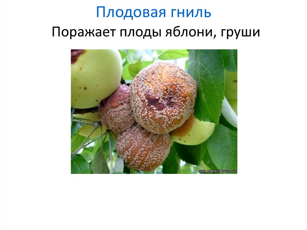 Плодовая гнильПоражает плоды яблони, груши