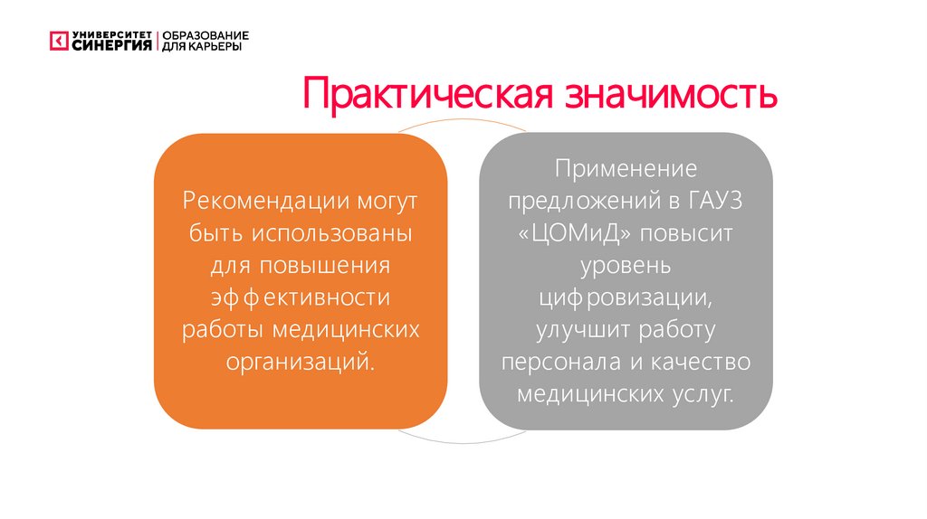 Практическая значимостьРекомендации могут