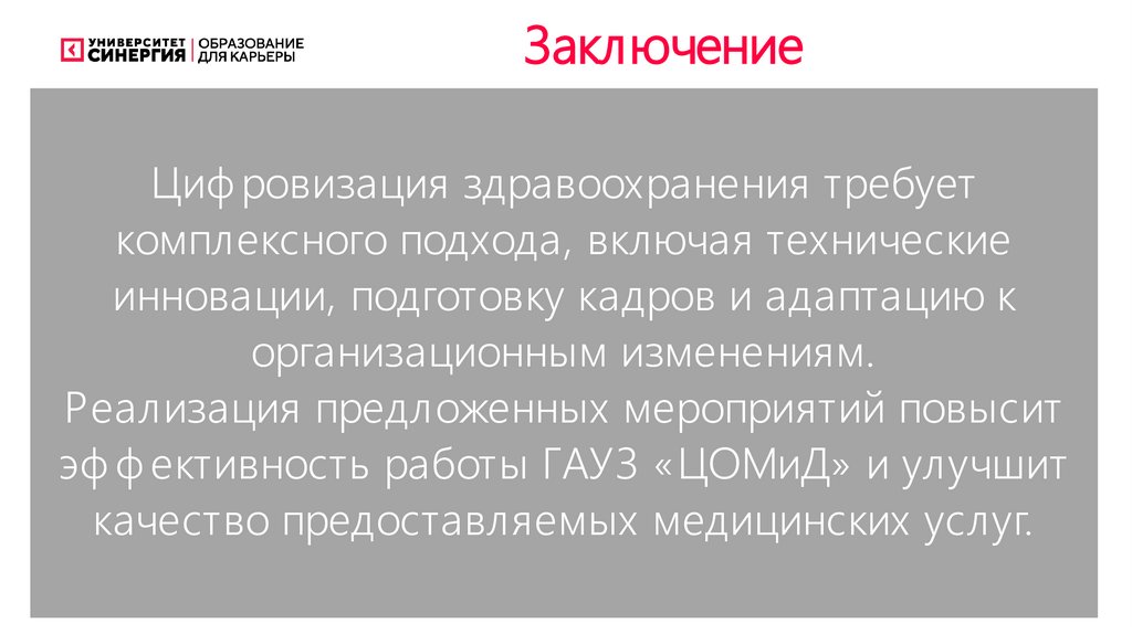 ЗаключениеЦиф ровизация здравоохранения требует