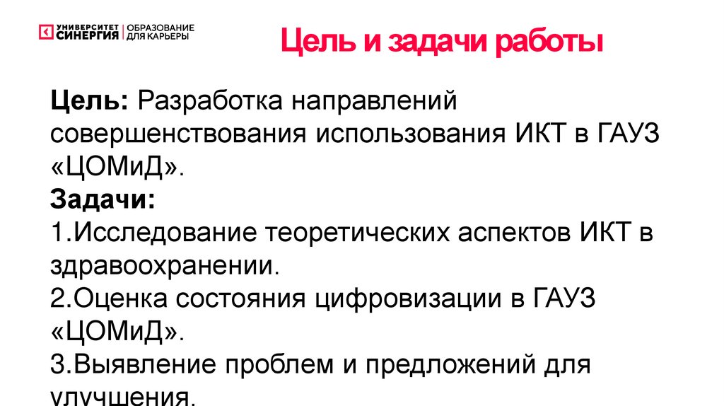 Цель и задачи работыЦель: Разработка направлений