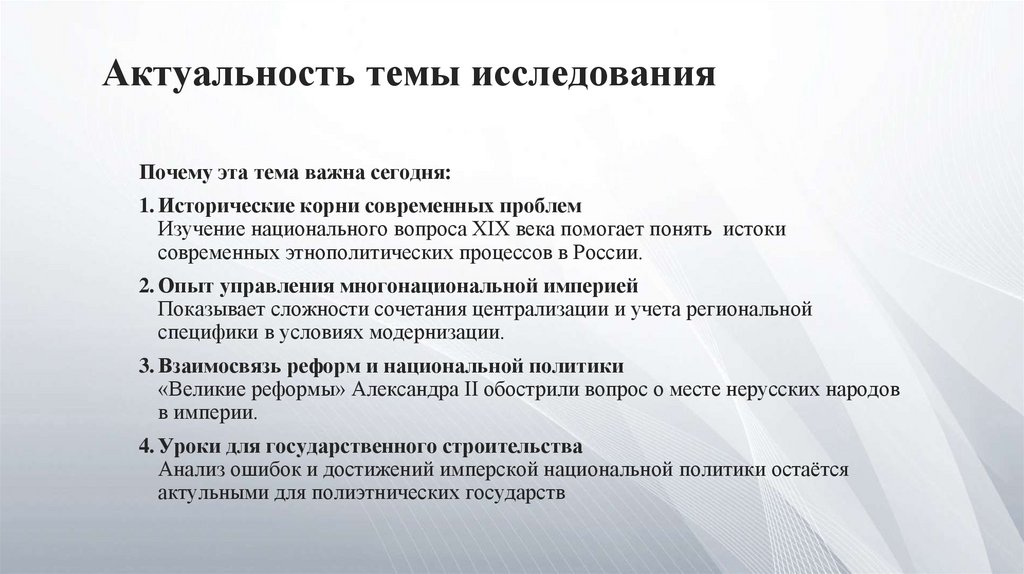 Анализ ошибок и достижений имперской национальной политики остаётся