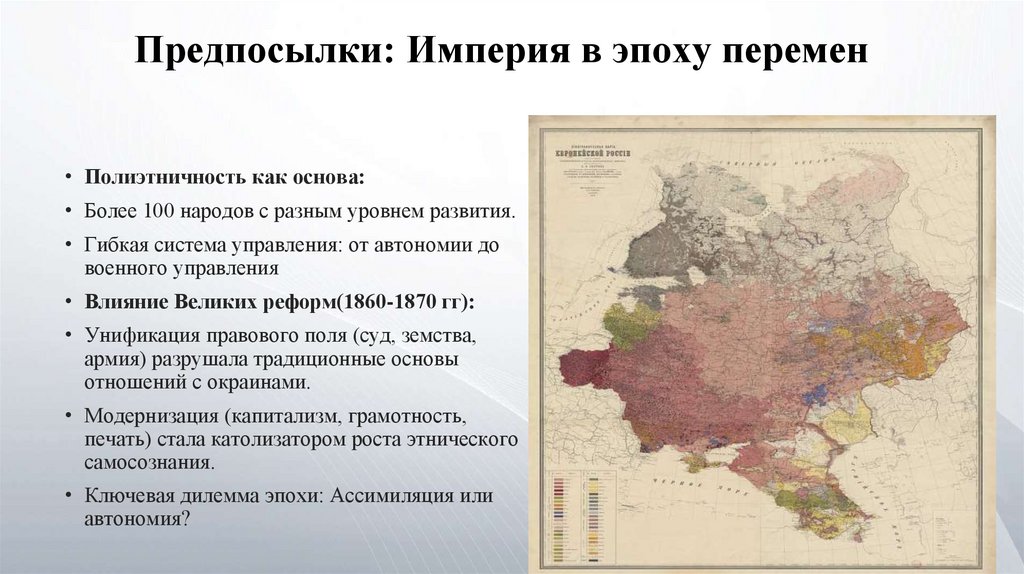 Предпосылки: Империя в эпоху перемен• Полиэтничность как основа: