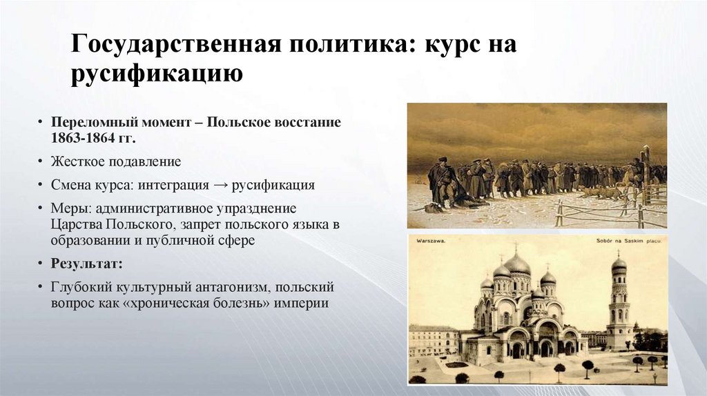 2.Государственная политика, перешедшая после 1863 г. к жесткой