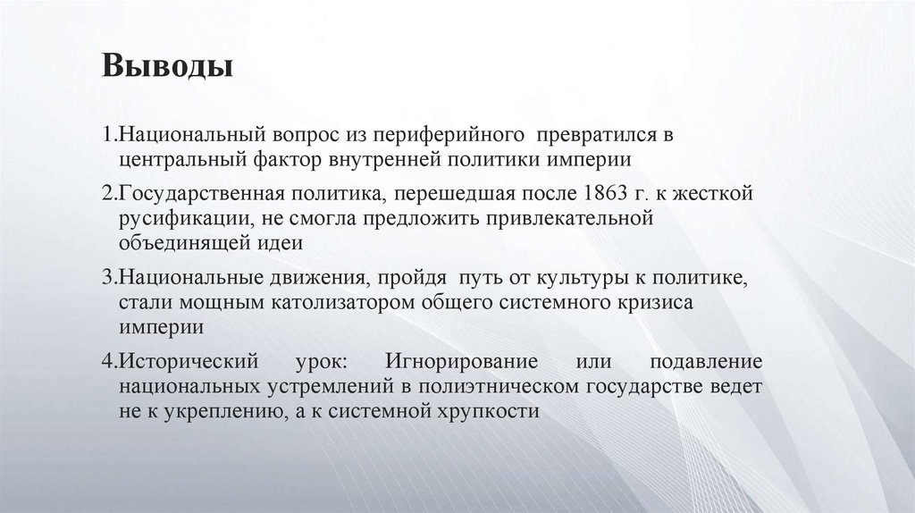 Выводы1.Национальный вопрос из периферийного превратился в