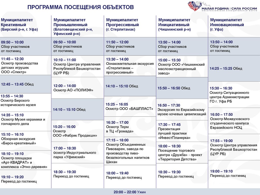 ПРОГРАММА ПОСЕЩЕНИЯ ОБЪЕКТОВМуниципалитет