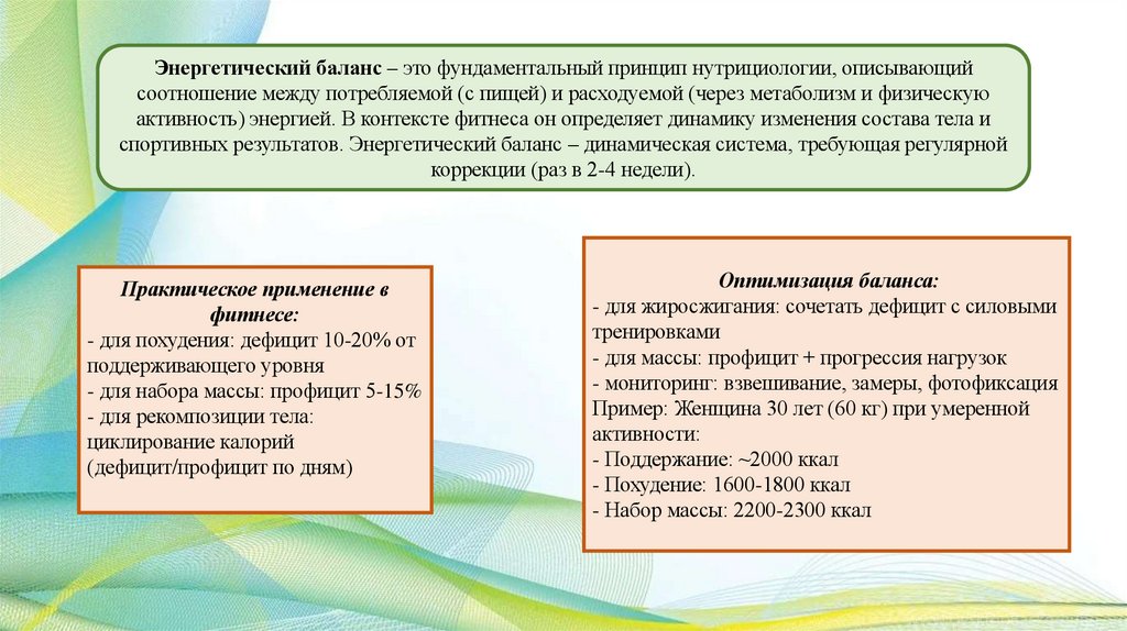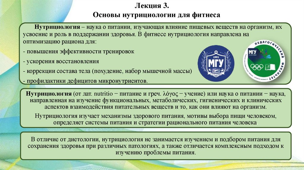 усвоение и роль в поддержании здоровья. В фитнесе нутрициология направлена на