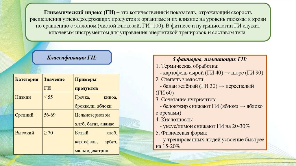 называемый гликемический индекс (ГИ) продукта. Если он высокий, то углеводы из него усваиваются